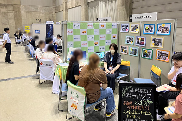企業間同士で共同資料を準備したり、自社ブースに来られた求職者の話を聞いて、他のブースへも積極的に誘導案内する様子もあり、会場内は様々な形で賑わいました。