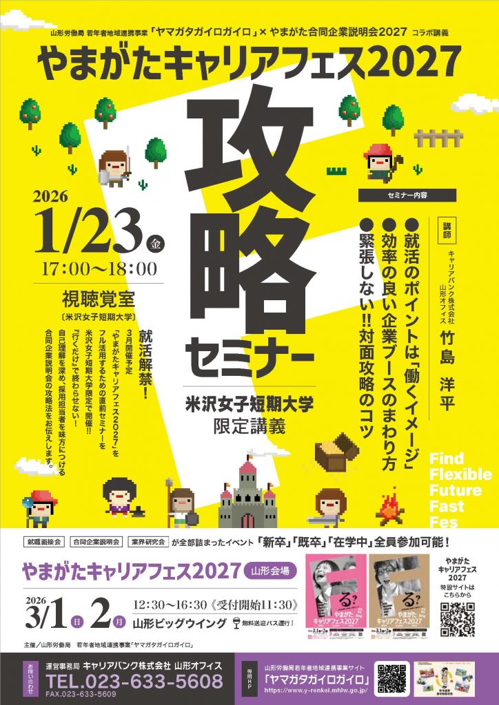3月開催予定「やまがたキャリアフェス2027」をフル活用するための直前セミナーを米沢女子短期大学限定で開催!!